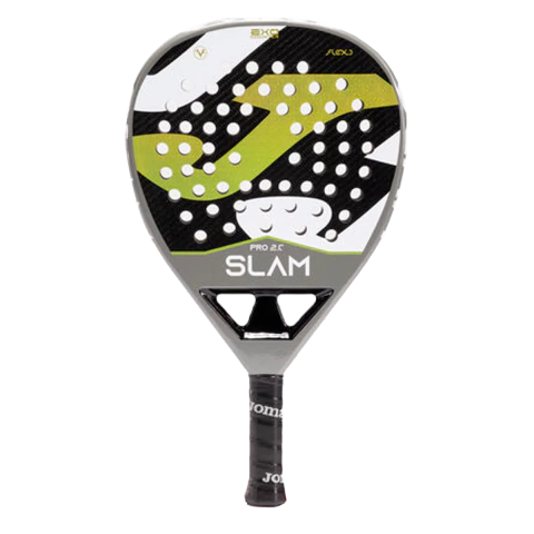Pala de pádel Slam Pro, modelo diseñado en forma de diamante que destaca por su combinación excepcional de potencia y control, lo que la convierte en una pala altamente polivalente. Su versatilidad es ideal para jugadores expertos que buscan definir puntos clave y sacar el máximo rendimiento en cada situación de juego, ya sea en ataques contundentes o en defensas estratégicas.